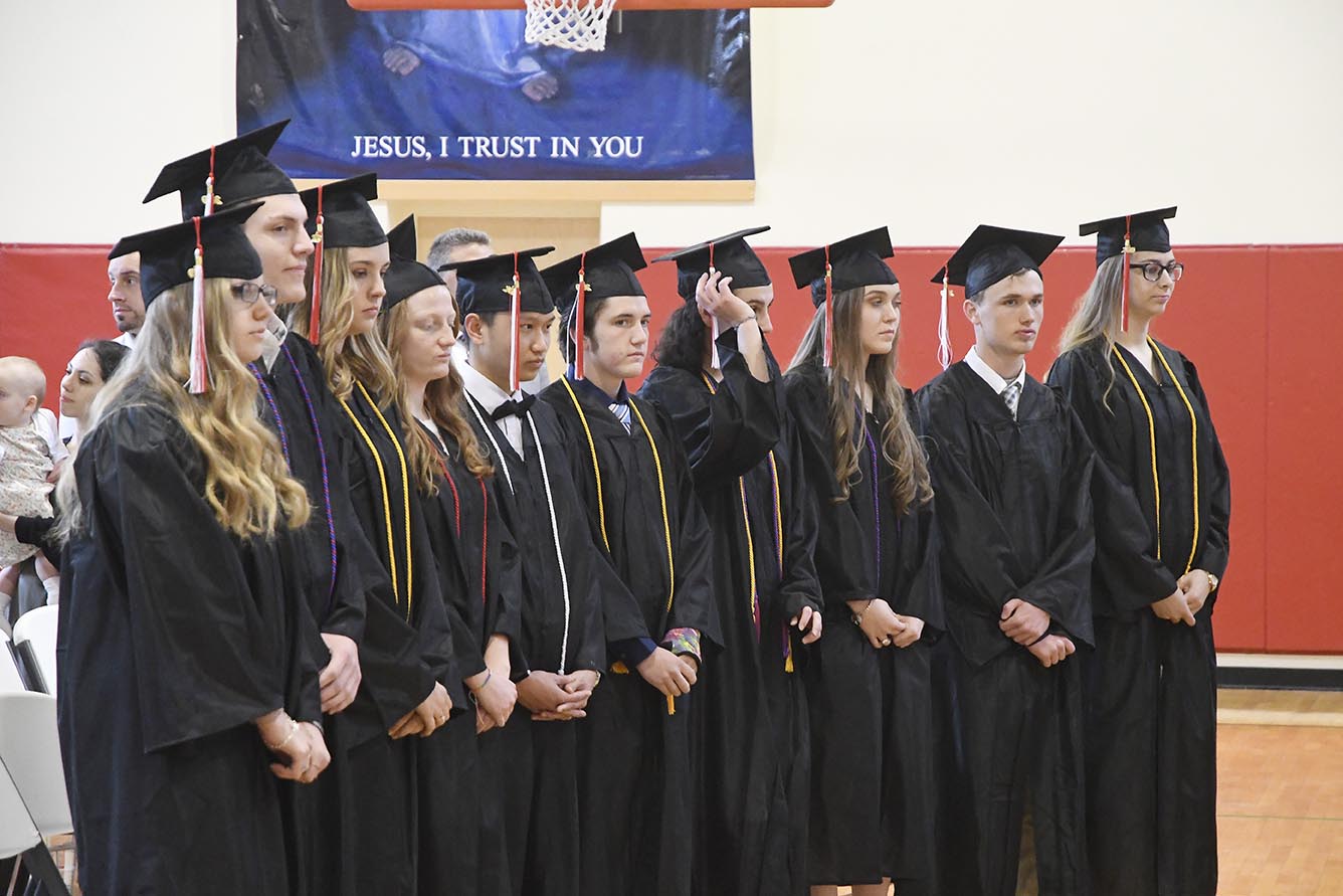 Besides the timing of this commencement, there is also another providential sign. Two of these graduates will have started and finished their education at Mount Royal Academy. This is uncommon but it serves as the most reliable indicator of success. How do we measure success here? Have you grown in virtue? Is your intellect refined and clear? Do you desire to grow in holiness? And if we refer back to the moment of Pentecost, we see that these indicators of success are not always happening according to our plan, but more so God’s providential wisdom. His timing never fails.