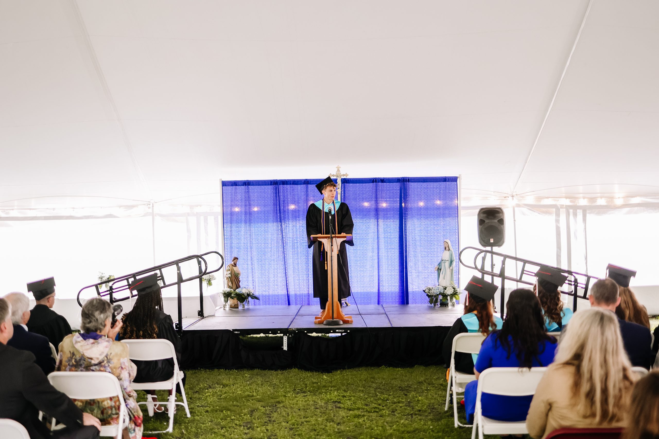 This, I believe, is the greatest accomplishment of this remarkable school: forming young men and women to be heralds of the Good News in a world that so desperately needs to hear it. Thank you again, and congratulations to my fellow graduating seniors. God bless you all.