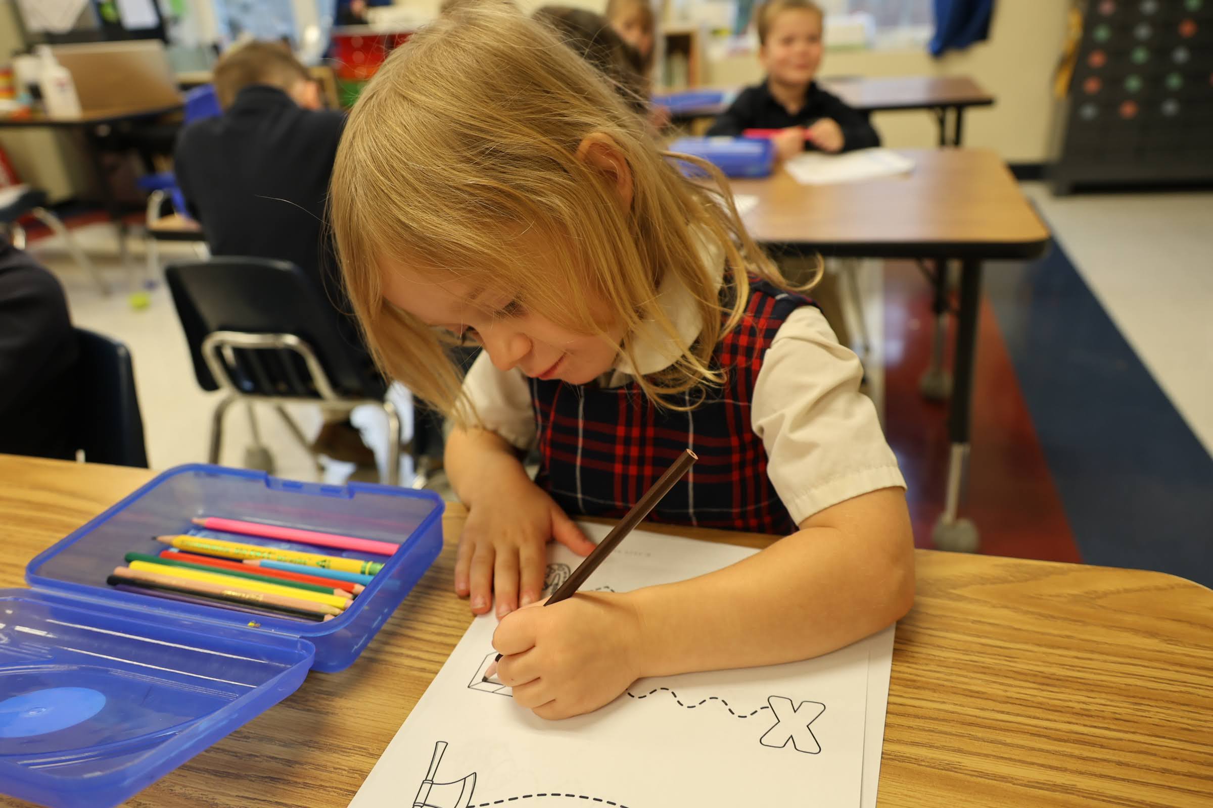 The Kindergarten program is a five full day classroom where students are preparing themselves for the content and instruction of the classical curriculum.